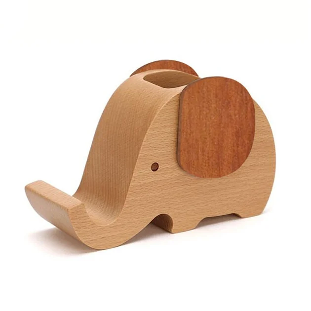 Wooden Cute Elephant Multi-functional Offical Mini Lazy Bracket Phone Holder Pen holder
