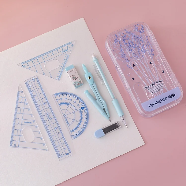 AIHAO Compass/Mechanical Pencil/Eraser/Pen Core/Ruler/Protractor Stationery Set Random Colour Delivery