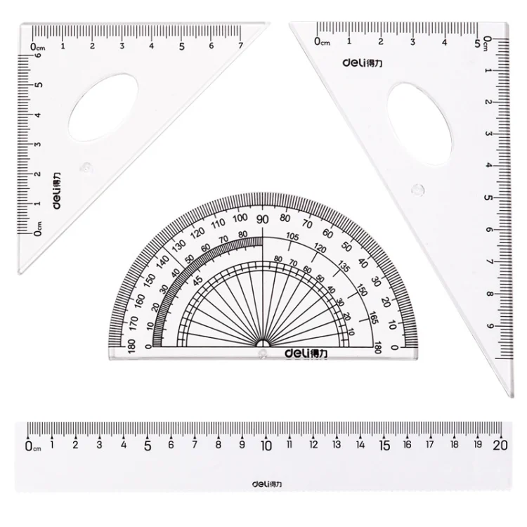 1. 4-in-1 ruler set, including 15 cm ruler, 45-degree set ruler, 60-degree set ruler, and protractor, a set to meet learning needs