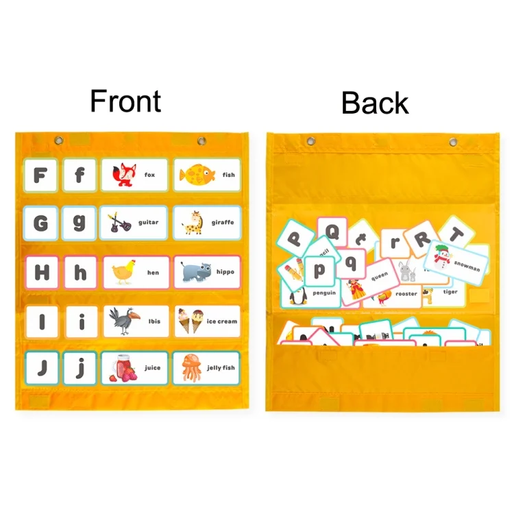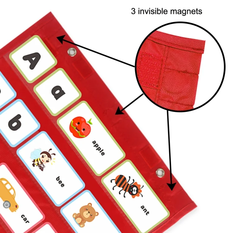 2. The hook and loop fastener can be attached vertically or horizontally, with 5 rows of transparent pockets on the front to teach new vocabulary, introduce rhyming words, or provide visual aids for math exercises and equations