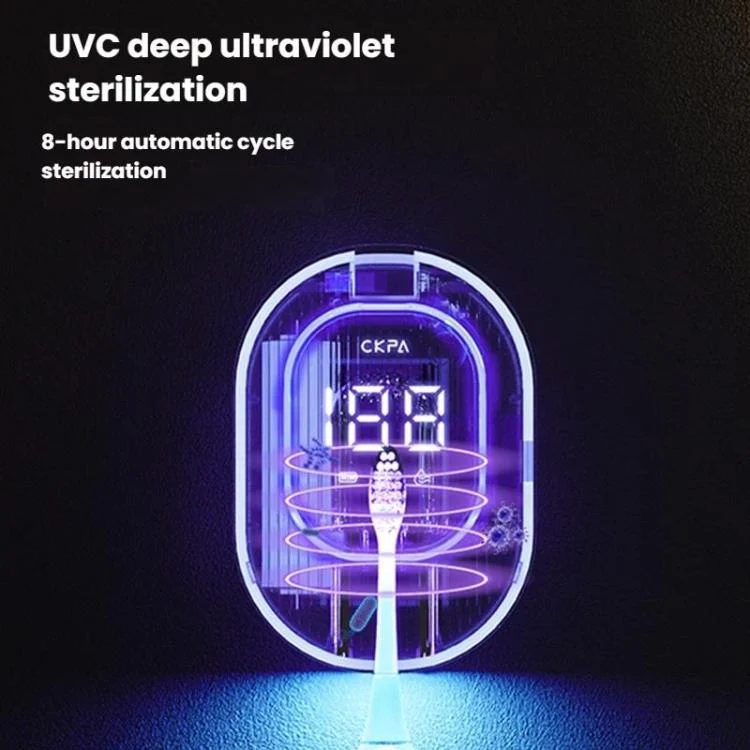 CKPA Rechargeable UV Toothbrush Sterilizer and Holder with Smart Display, No-Drill Adhesive Mount for Electric Toothbrushes