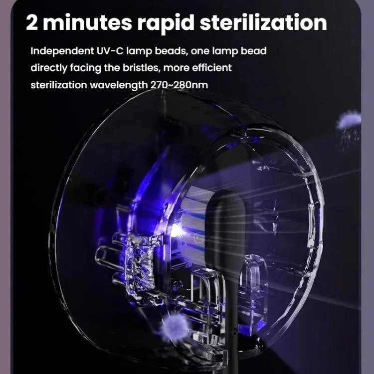 1. 2-Minute Efficient Sterilization Function: Equipped with an independent UV-C lamp bead (germicidal wavelength 270-280nm) that directly irradiates bristles for rapid sterilization (available only with the sterilization model).