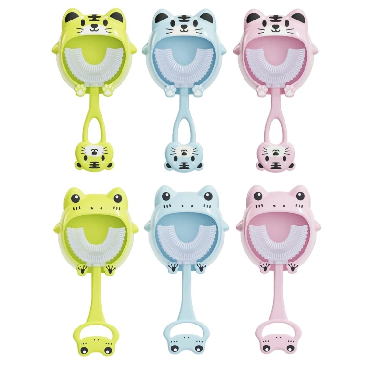 S8 2pcs Children Cartoon Animal Manual U-shaped Silicone Toothbrush for 2-12 Years Old