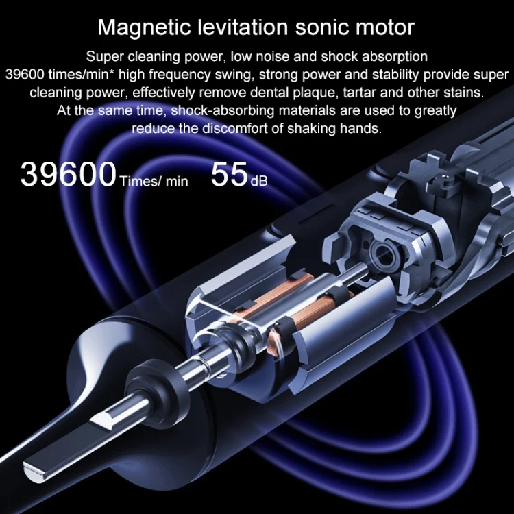9. 39600 times/min high frequency swing, strong power and stability provide super strong cleaning power, effectively remove dental plaque, tartar and other stains. At the same time, shock absorption materials are used to greatly reduce the discomfort of shaking hands.