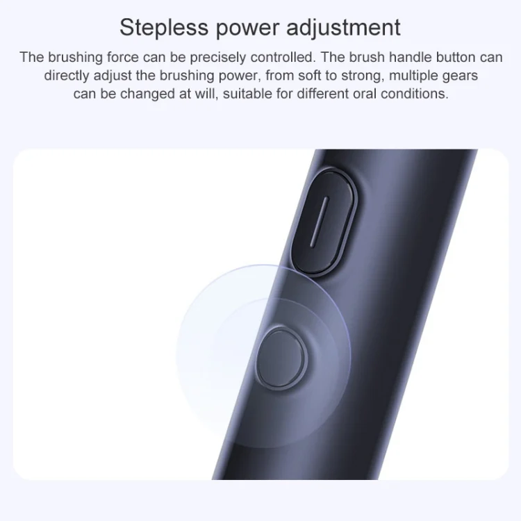 10. The brush handle button can directly adjust the brushing power, from soft to strong, multiple gears can be changed at will, suitable for different oral conditions.