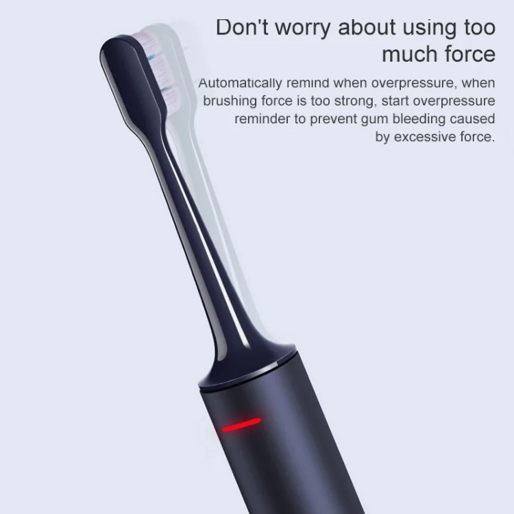 12. When the brushing force is too strong, the overpressure reminder is activated to prevent the bleeding of the gums caused by excessive force.
