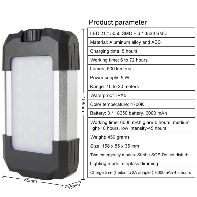 7. Power supply: Built-in 6000mAh rechargeable Lithium battery