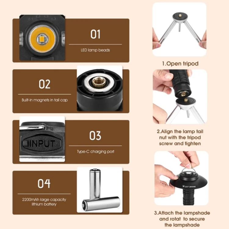 WEST BIKING Outdoor Lighthouse Camping Light LED Portable Magnetic Emergency Flashlight
