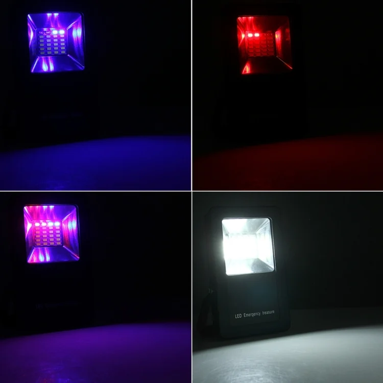 30W IP65 Waterproof USB Charging Floodlight, 24 LEDs SMD5730 2400LM 6000-6500K Red and Blue Light Flashing Warning Lights Portable with Holder
