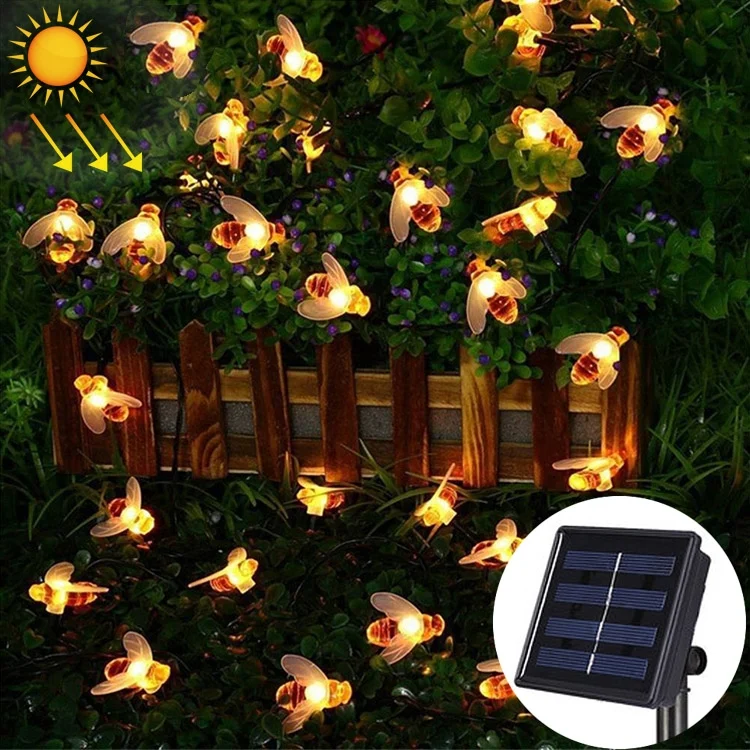 4.8m 20 LEDs Bee Solar Powered Warm White Waterproof Outdoor Garden Decorative String Light Fairy Lamp with 100mA / 1.2V Solar Panel
