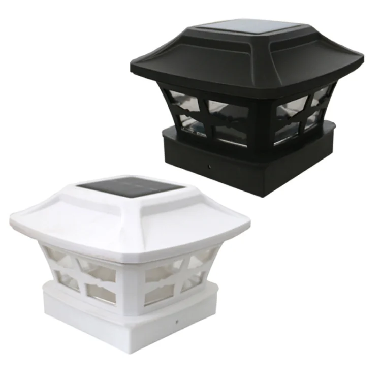 4 inch Outdoor Solar Column Lamp White + Warm White Light Garden Lamp
