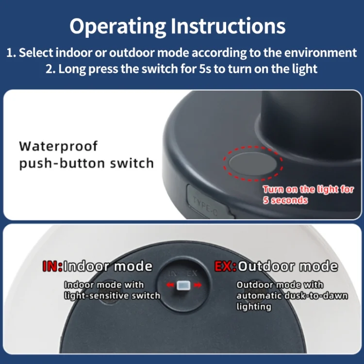 –Indoor mode: photosensitive off, button switch light