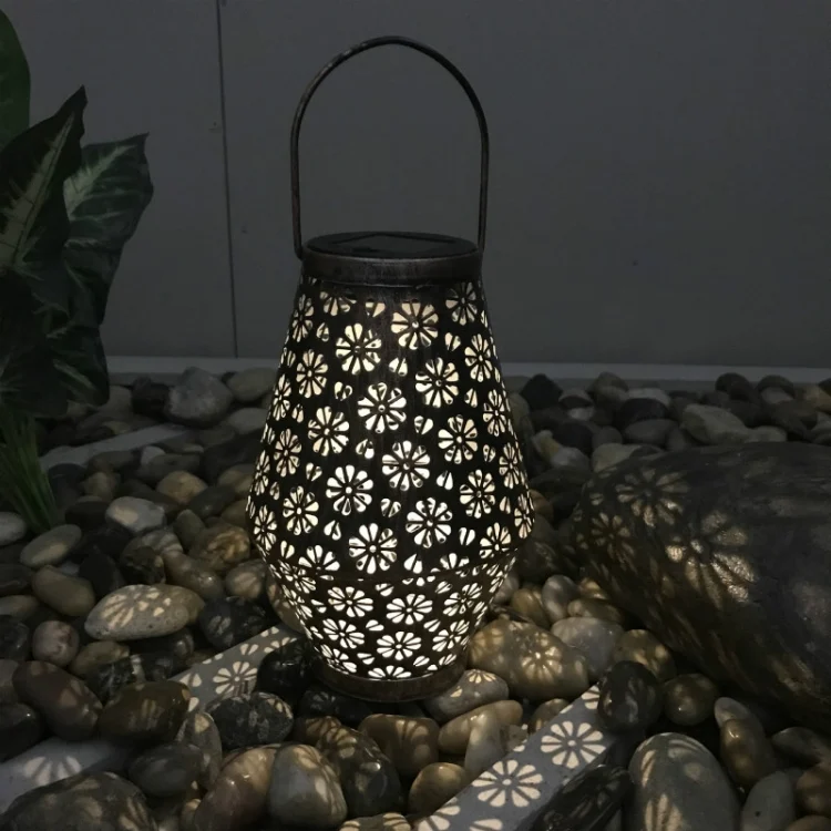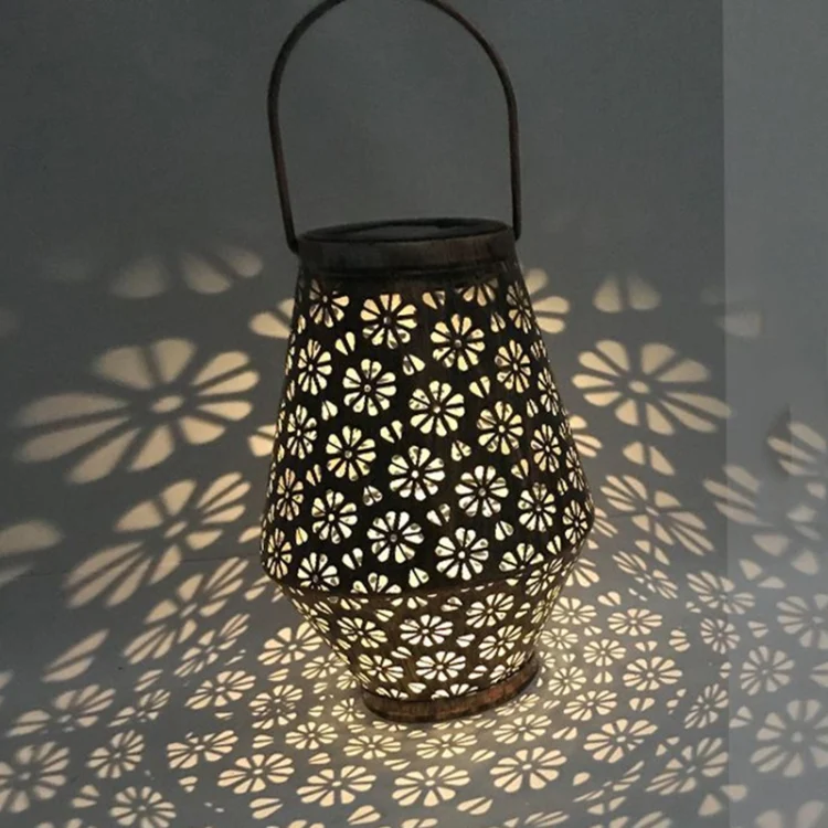 Outdoor Solar Wrought Iron Lantern Garden Decoration Light LED Pendant Lamp