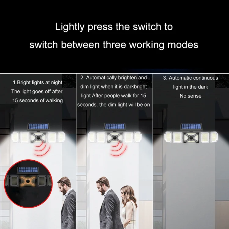 Remote Control Solar Wall Light LED Triple Rotation Sensor Flood Light