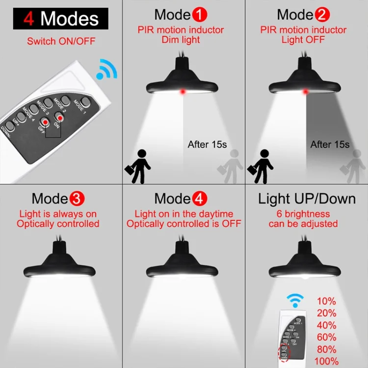 6. Working mode: 4-modes adjustable, light control + PIR sensor