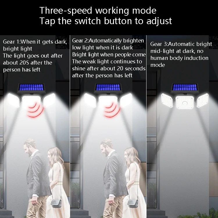 Solar 3-Head Rotatable Wall Lights Human Sense Outdoor Waterproof Garden Street Light