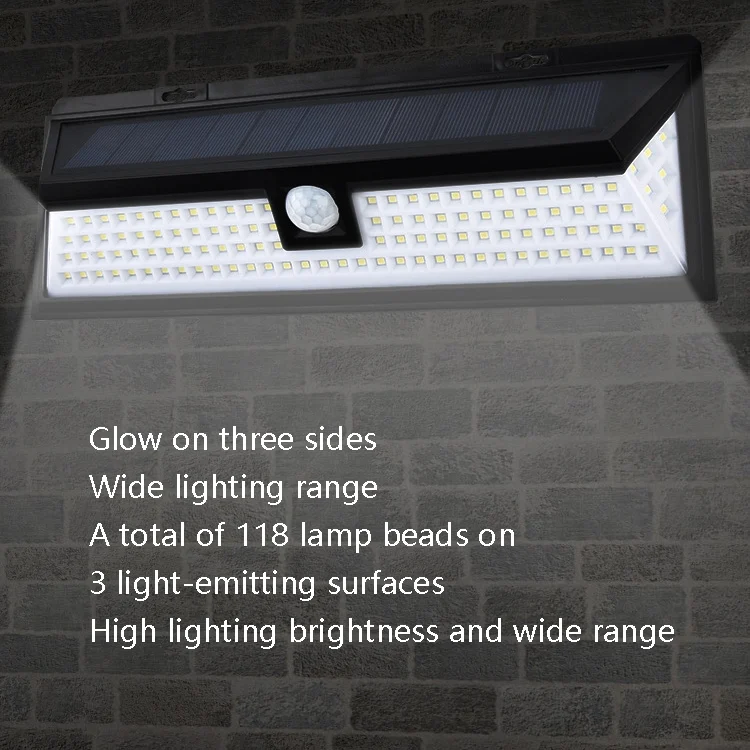 Solar 3-Sides Floodlit Motion Sensing Wall Light Outdoor Garden Corridor Street Light