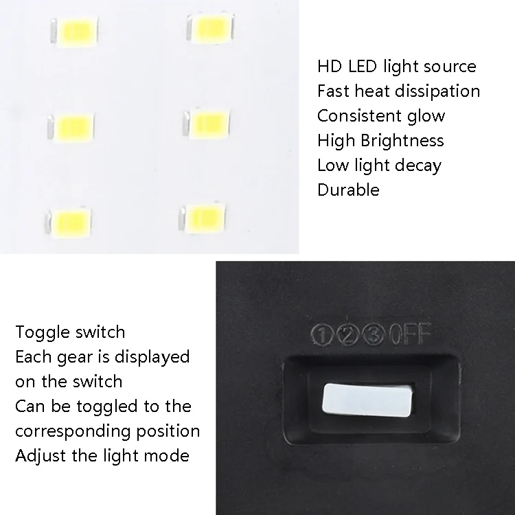 5. Toggle switch, each gear is displayed on the switch, which can be moved to the corresponding position to adjust the light mode