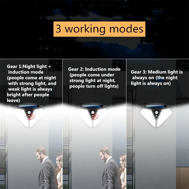 – Night light + induction mode (people come at night with strong light, and the weak light is always bright after people walk)