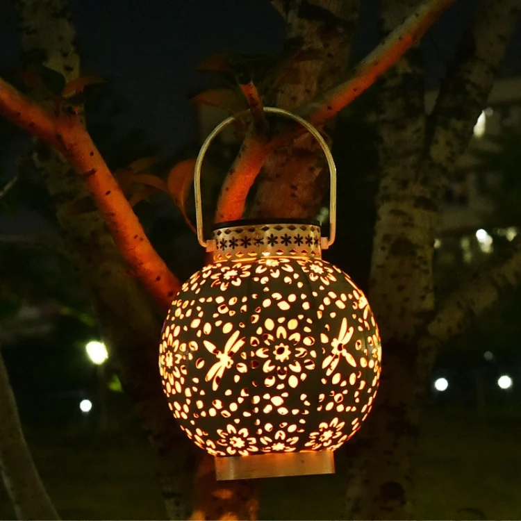 SZ-20004 Solar Lantern Wrought Iron Hollow Lawn Lamp Outdoor Garden Decorative Lamp