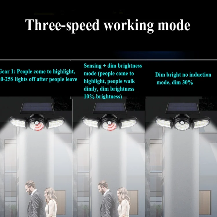 TG-TY080 3-Heads Rotatable Solar Wall Light Outdoor Waterproof Human Body Induction Garden Lawn Lamp