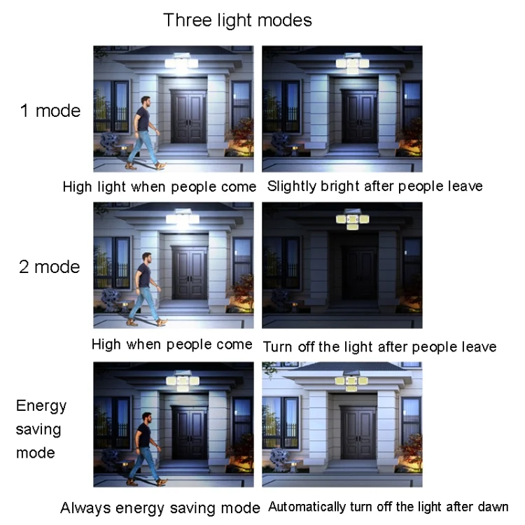 – Induction mode: high light when people come, 20-25S light off after people leave