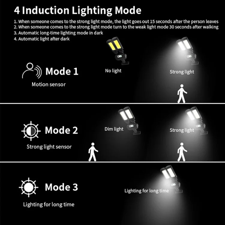 – Induction mode (when people come to highlight, the light will be off after 20-25S when people leave)
