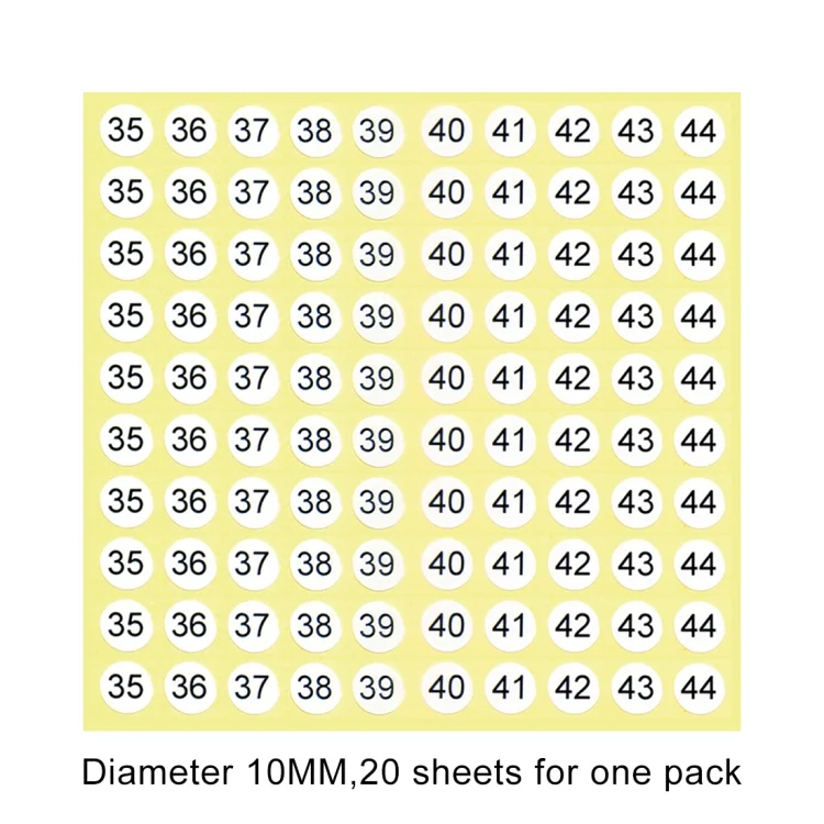 20 PCS Round Shape Number Sticker Shoe Size Label, Number 35-44