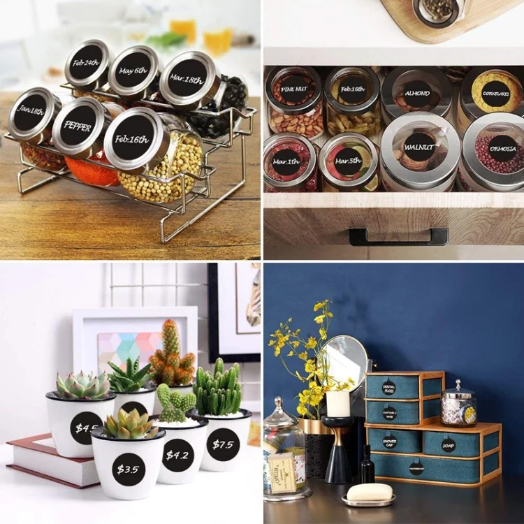 50 Sets Waterproof Removable Storage Bottle Sticker PVC Easy-To-Erasable Blackboard Sticker