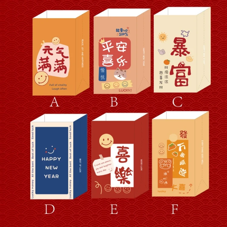 6pcs /Set Spring Festival Gift Bag New Year Paper Bag Candy Cookie Bag