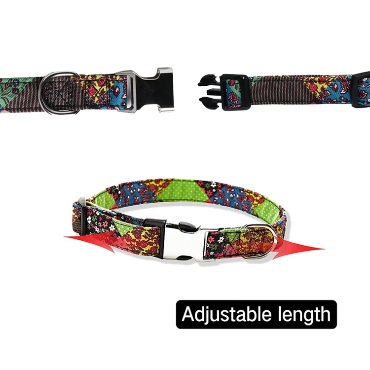 Ethnic Bohemian Floral Half Metal Buckle Dog Collar, Size: