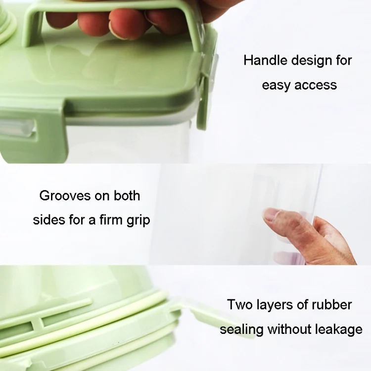 6. Sealing design, rest assured that the storage of food two layers of sealed rubber ring, every day to eat fresh food