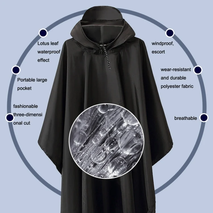 1. Floor mat hooded raincoat, lengthened design, portable pocket