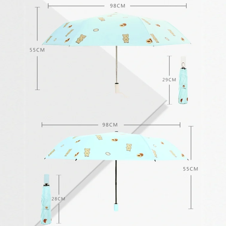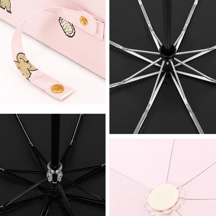 Children Sweet Vinyl Sunscreen Umbrella Tri-fold Student Cartoon Folding Umbrella