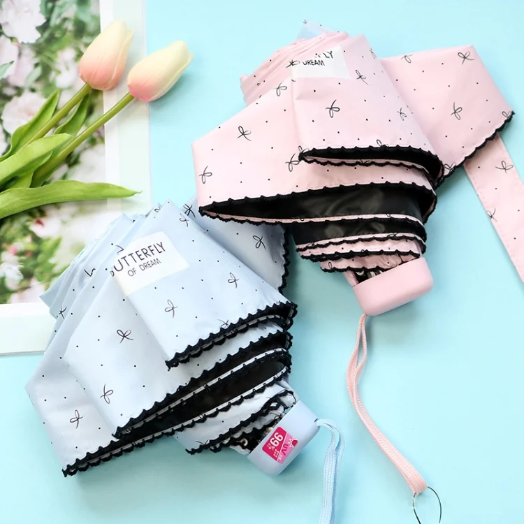 Mini Pocket 5 Folding Umbrella UV Protection Black Plastic Umbrella