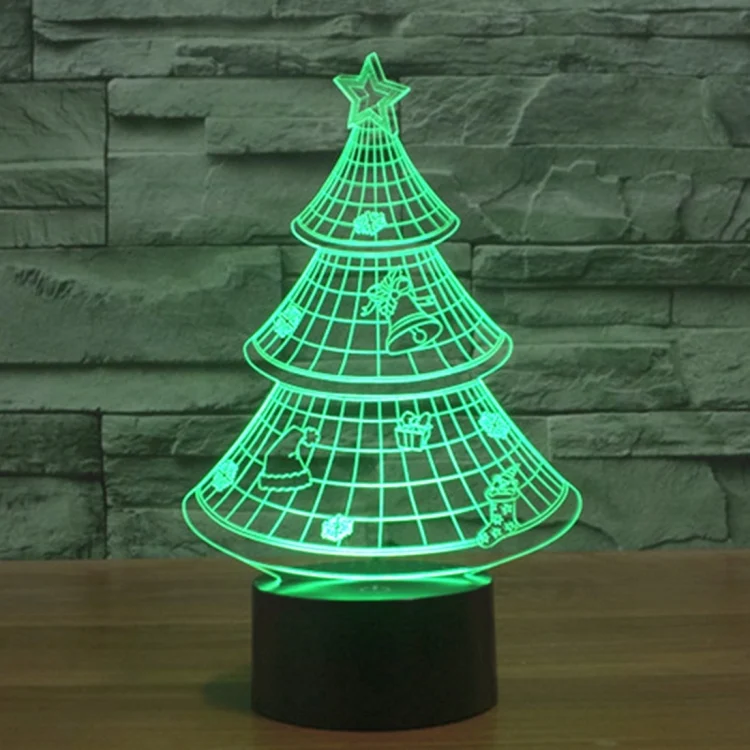 Christmas Tree Style 3D Touch Switch Control LED Light , 7 Color Discoloration Creative Visual Stereo Lamp Desk Lamp Night Light