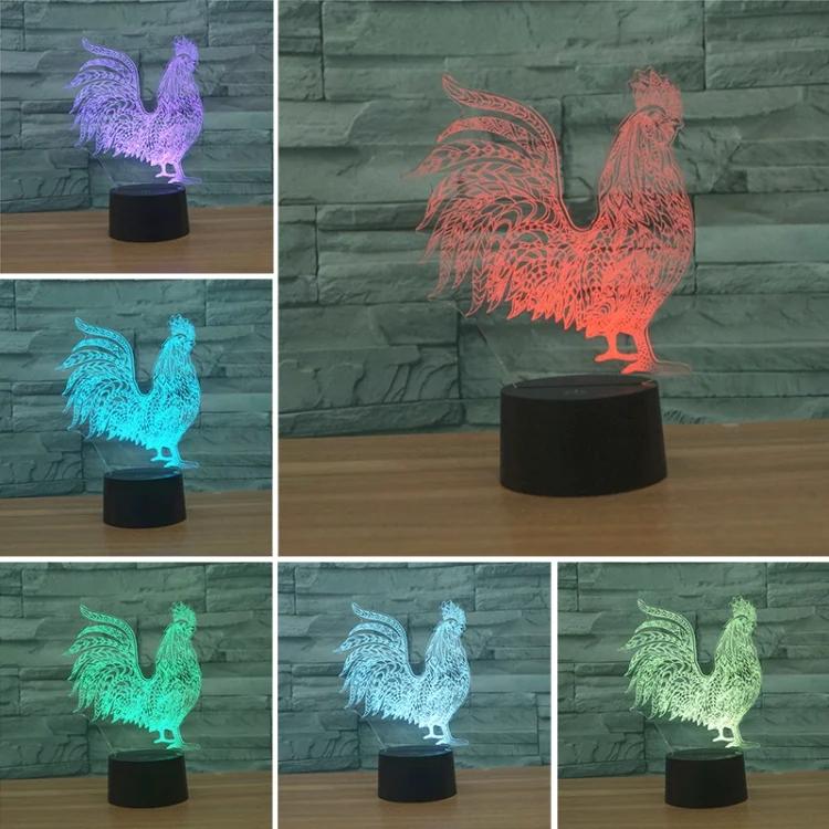 Cock Shape 3D Colorful LED Vision Light Table Lamp, USB Touch Version