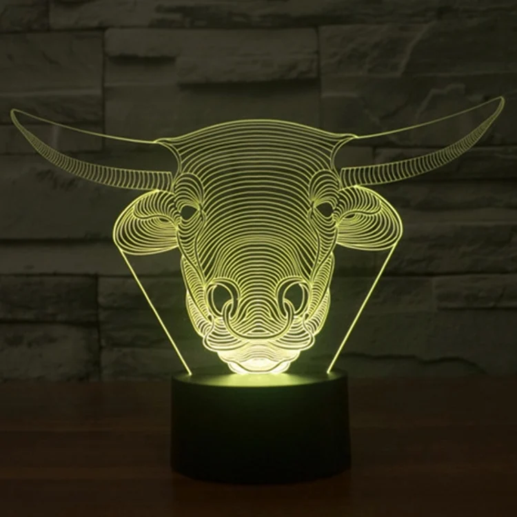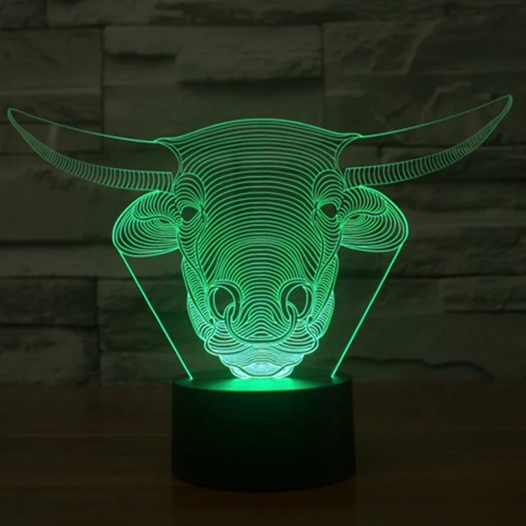 Cow Style 3D Touch Switch Control LED Light , 7 Colour Discoloration Creative Visual Stereo Lamp Desk Lamp Night Light