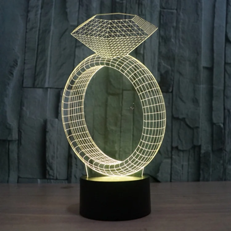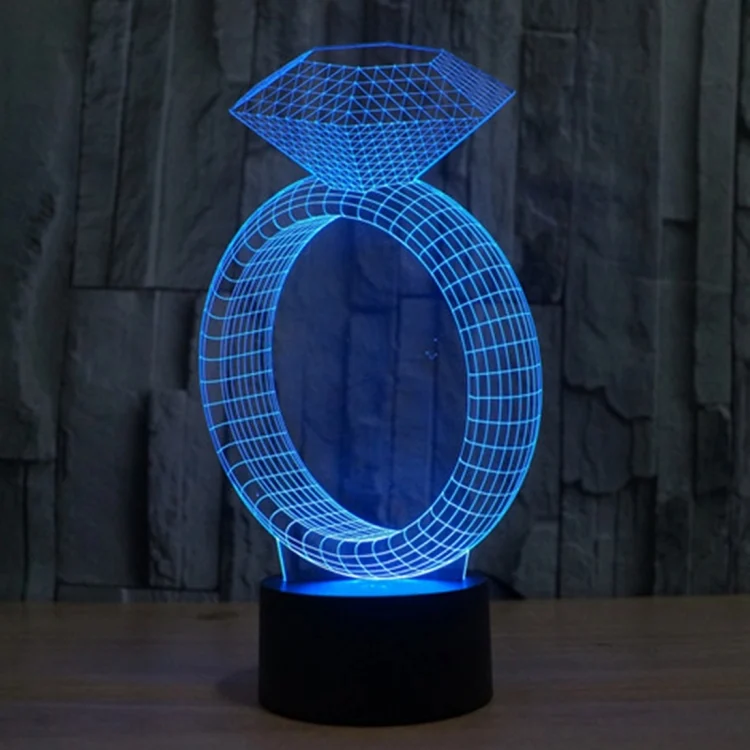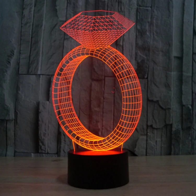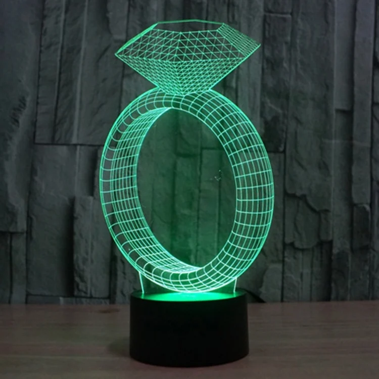 Diamond Ring Style 3D Touch Switch Control LED Light , 7 Color Discoloration Creative Visual Stereo Lamp Desk Lamp Night Light