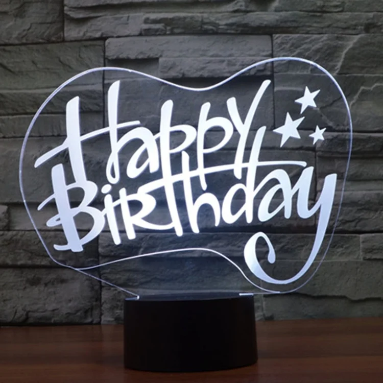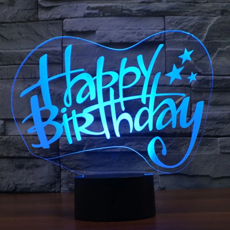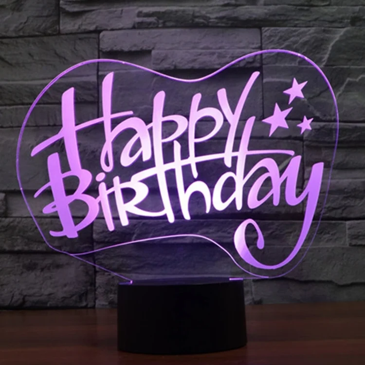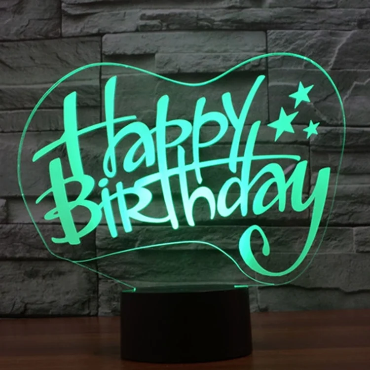Happy Birthday Style 3D Touch Switch Control LED Light , 7 Color Discoloration Creative Visual Stereo Lamp Desk Lamp Night Light