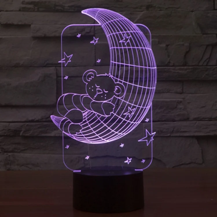 Moon Bears Style 3D Touch Switch Control LED Light , 7 Color Discoloration Creative Visual Stereo Lamp Desk Lamp Night Light