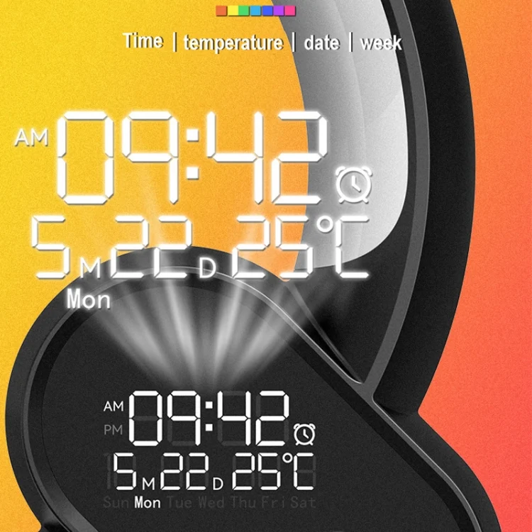 Multi-Functional RGBW Atmosphere Light Bluetooth Speaker Sunrise Wake-Up Lamp Digital Display Alarm Clock