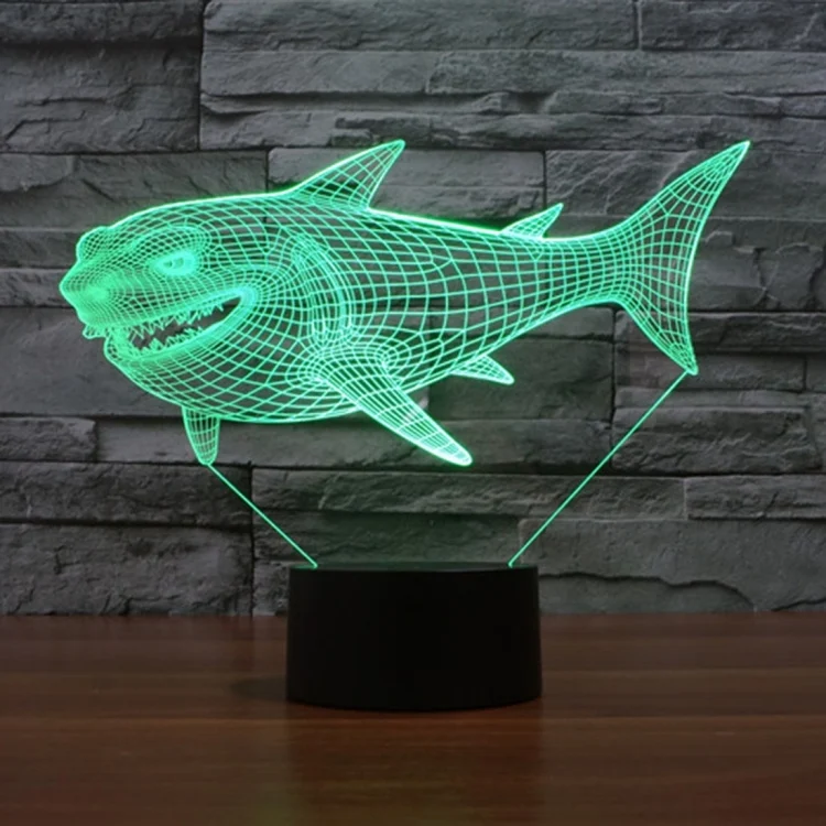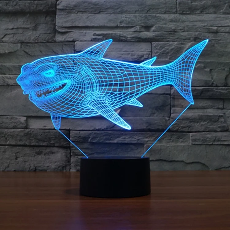 Side Face Shark Style 3D Touch Switch Control LED Light , 7 Color Discoloration Creative Visual Stereo Lamp Desk Lamp Night Light
