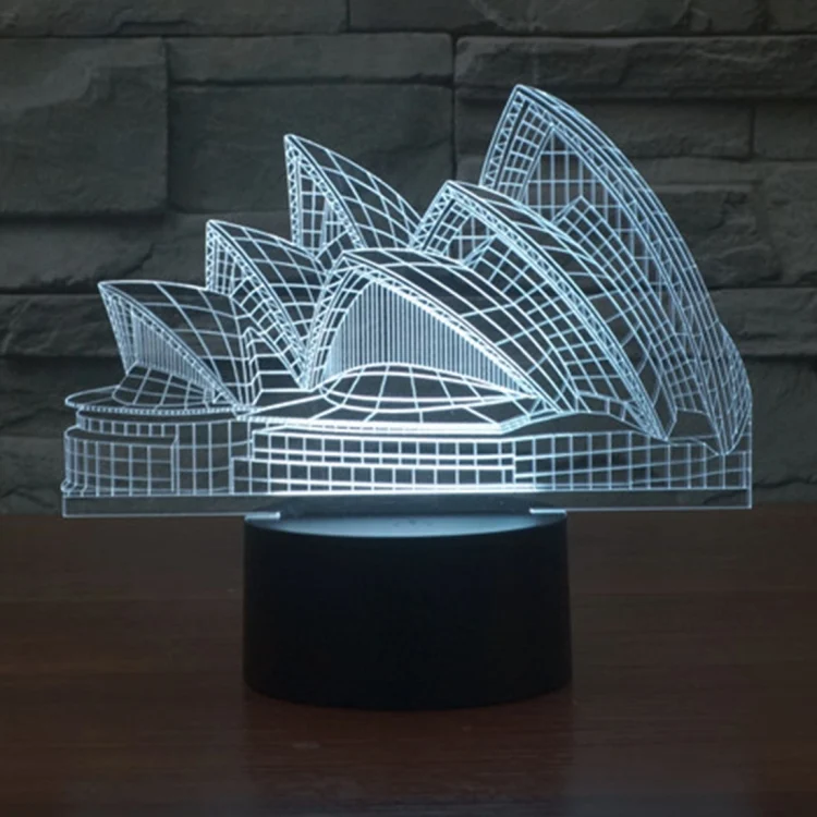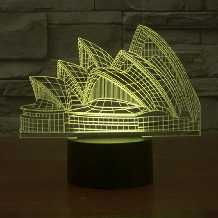 Sydney Opera House Style 3D Touch Switch Control LED Light , 7 Color Discoloration Creative Visual Stereo Lamp Desk Lamp Night Light