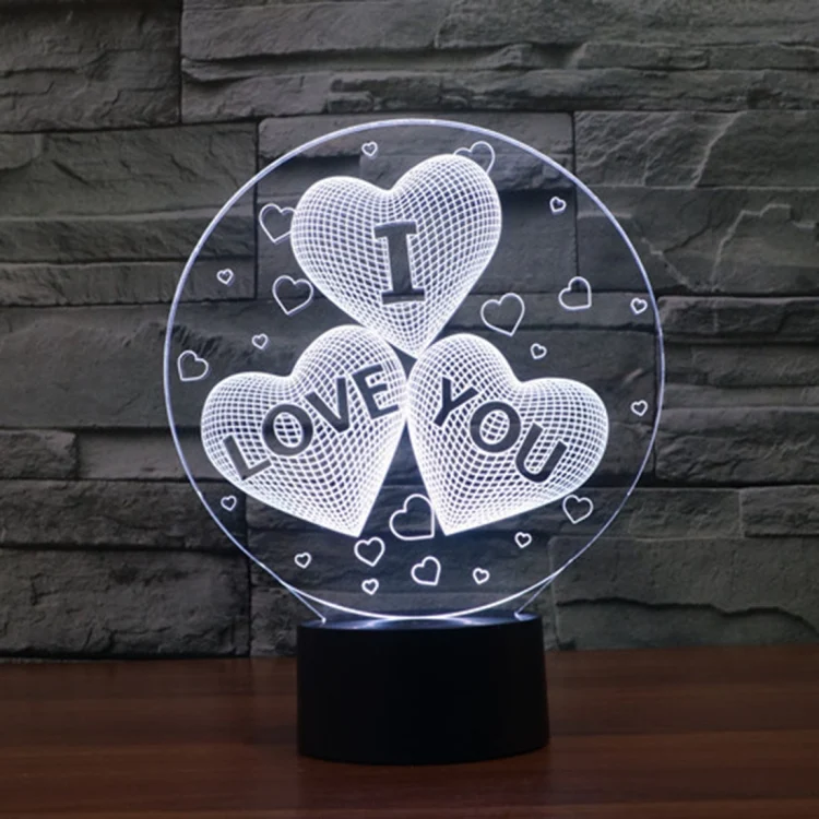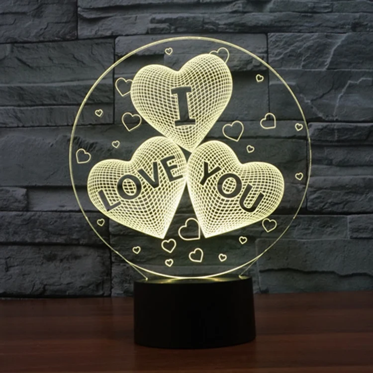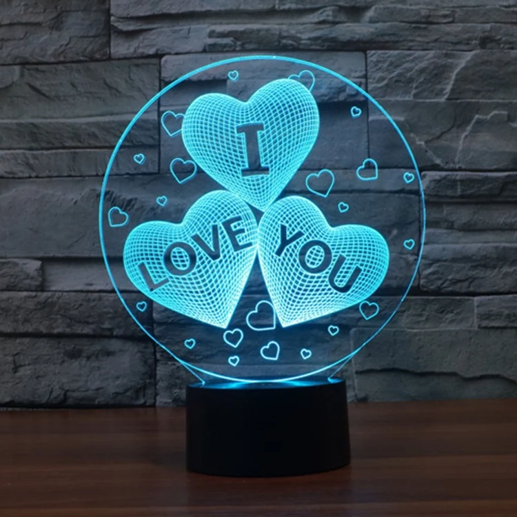 Three Hearts Shape 3D Touch Switch Control LED Night Light , 7-color Discoloration Creative Visual Stereo Lamp Desk Lamp Novelty Gift