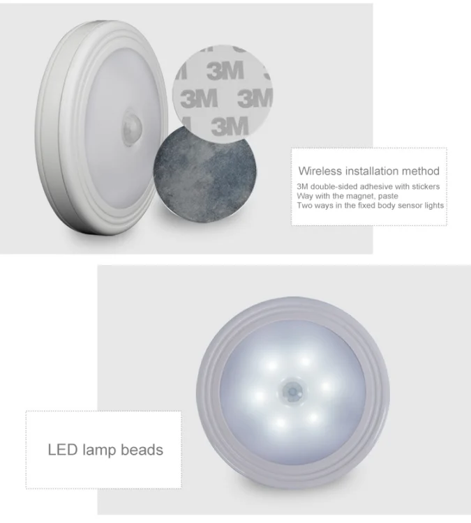 2. The LED light is controlled by PIR sensor switch, it also has light control function, with 6pcs of high brightness LED lamps loaded inside, using 3pcs of AAA batteries(not included the battery) supply power.