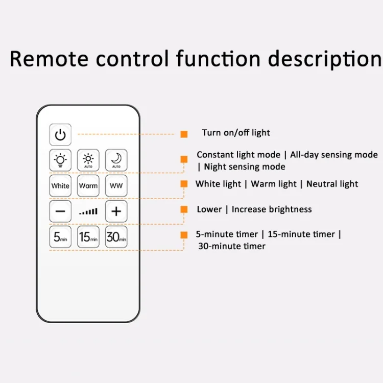 3. Two ways to control, remote control or button, the remote control has a new timing function, which can turn off the light at a time