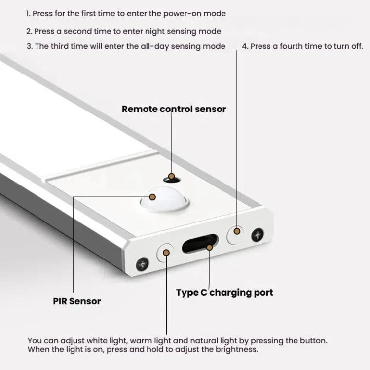 1. Rechargeable human body induction light, magnetic installation, no need for drilling or wiring, can be installed in the entrance/wine cabinet/cabinet/bookcase/wardrobe, etc.
