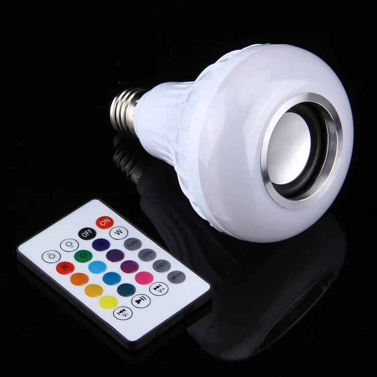 12W RGB LED Bluetooth Speaker Light, E27 Energy Saving Lamps with Remote Controller, AC 100-240V