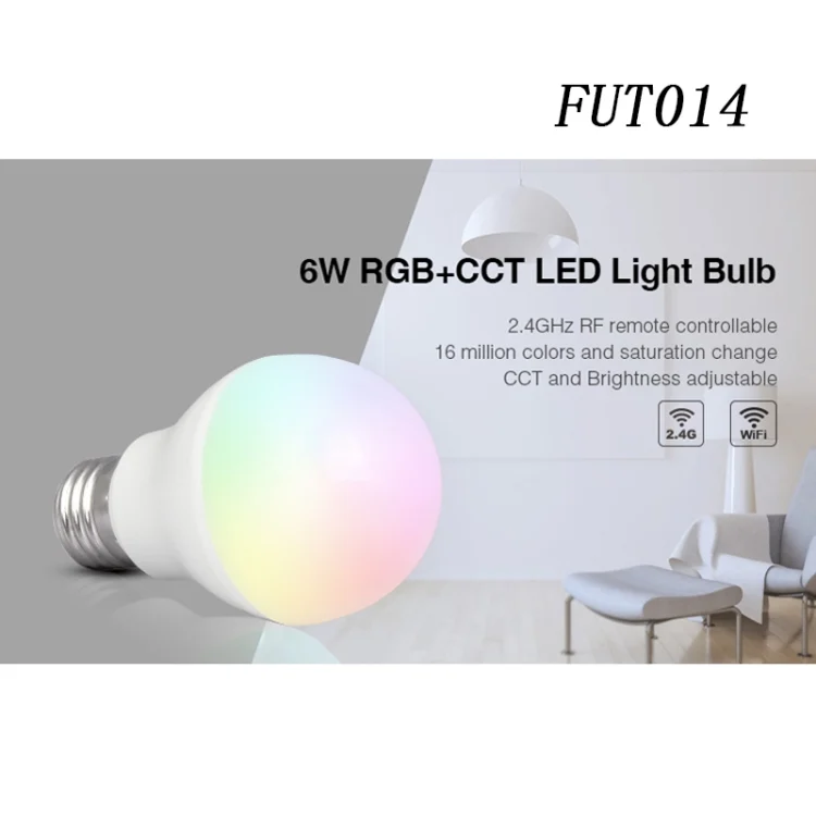 FUT014 E26 / E27 6W RGB + CCT Led Bulb Smart Phone APP WIFI LED Light White Warm Light Dimmable
